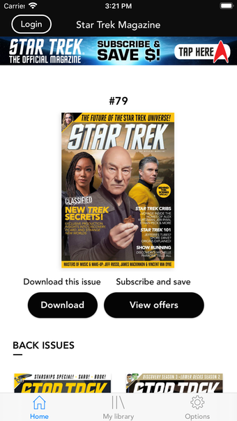 이 앱은 최신 뉴스, 캐스트 및 스태프 인터뷰, 그리고 비할 데 없는 현장 엑세스를 제공합니다. 또한 스타 트렉 세계로 파고드는 흥미로운 기사도 수록되어 있습니다. 현재 이슈와 백 넘버를 모두 구매할 수 있으므로, 사용자는 놓친 과거 콘텐츠를 모두 확인할 수 있습니다.